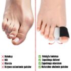 Natychmiast rozsuwa ściśnięte palce i koryguje oś palucha.